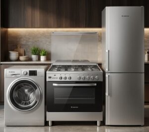 غسالة الاطباق، الثلاجة، الديب فريزر، مجفف الملابس، البوتاجاز، افران بلت ان، الميكروويف، تكييف الهواء.